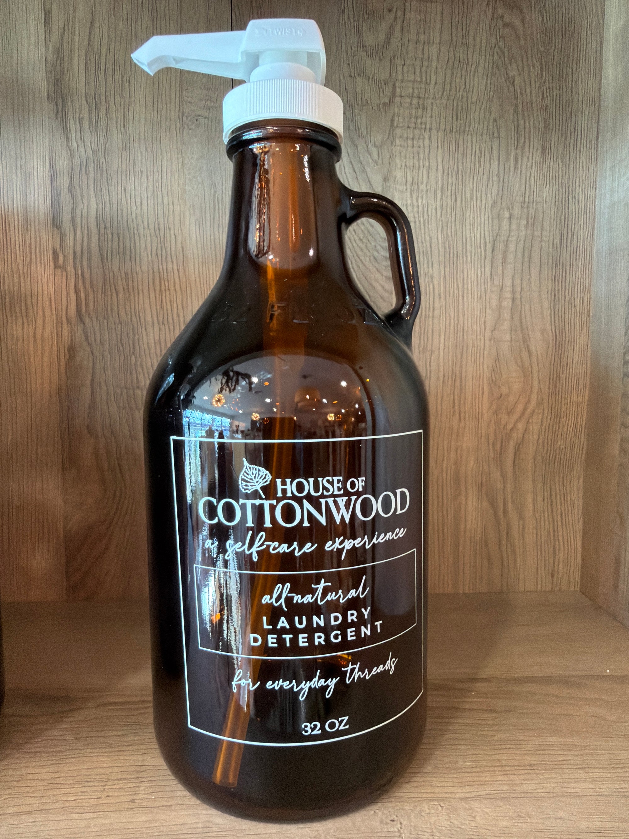 House of Cottonwood's Amber Laundry Soap Dispenser brings a warm, inviting touch to your laundry routine. With a rich amber-hued bottle and minimalist design, it blends seamlessly into any home decor.
