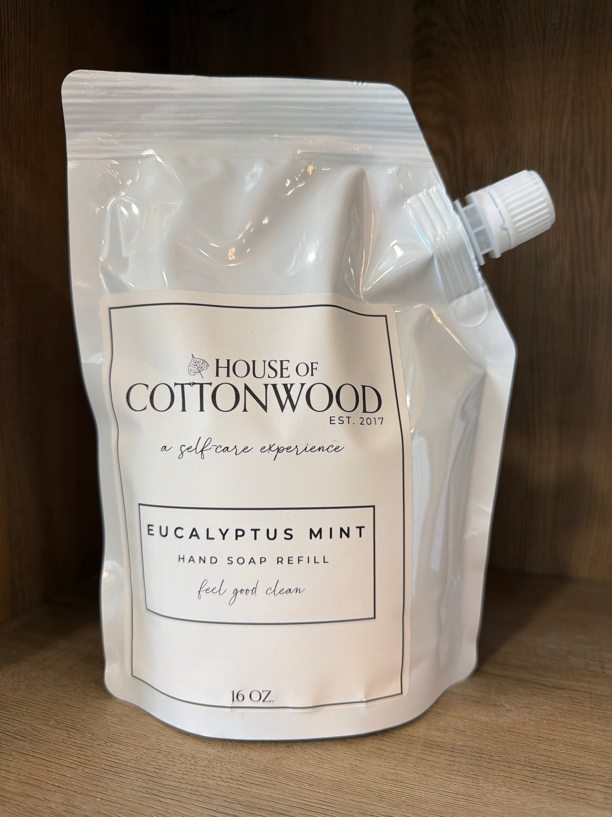 Cool, crisp and naturally refreshing- House of Cottonwood's Eucalyptus Mint Foaming Hand Soap creates an instant spa-like cleanse. Made with natural ingredients and essential oils, it delivers a light, airy foam that leaves hands feeling clean, soft, and revitalized.