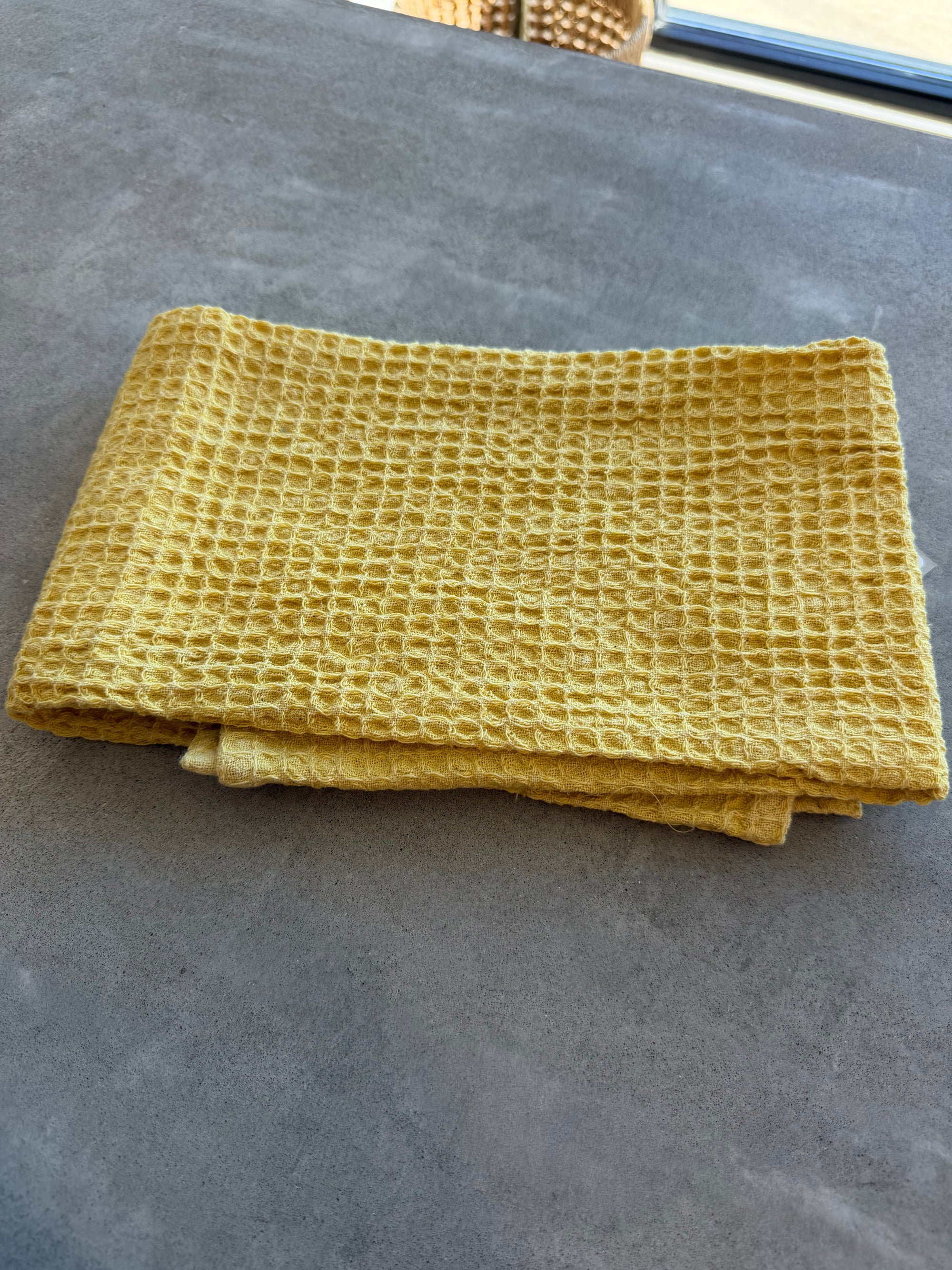 Made from soft stonewashed cotton, this oversized waffle weave style is both absorbent and stylish, with a convenient loop for easy hanging.